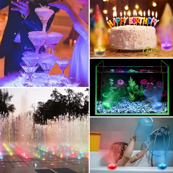 Sin enchufes, ¡sin chispas! Mejora el ambiente de cualquier pecera, recipiente de agua o cubitera con facilidad. Estas mini luces impermeables de colores vibrantes embellecen con elegancia la piscina, acuario, jarrón o cualquier decoración. Tanto si eres el anfitrión de una fiesta como si estás disfrutando de una tranquila velada, estas versátiles luces RGB elevarán el ambiente al instante.