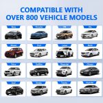 Funciona con más de 800 modelos de vehículos y es compatible con dispositivos iOS 10+ y Android 11+, todo en un diseño compacto que se integra en cualquier tablero.