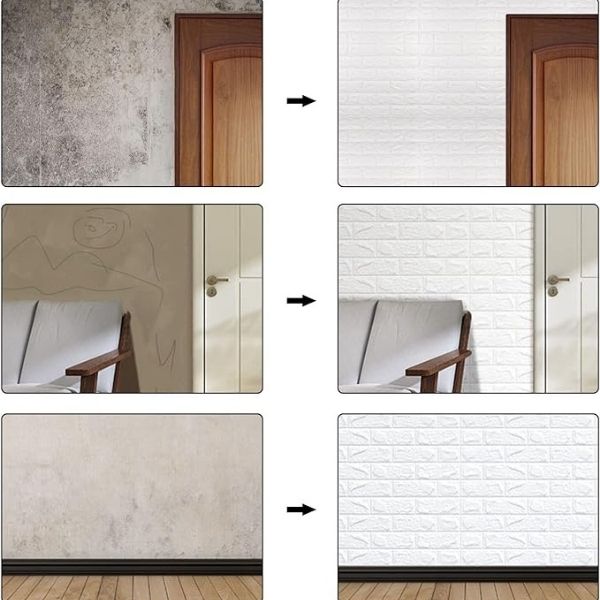Se creativo con tu decoración cortando los paneles BRICKSBY en formas y patrones únicos. Simplifica el proceso de instalación con tu papel autoadhesivo. Simplemente ajusta la forma al tamaño deseado, despega la película protectora y transforma sin esfuerzo tu espacio. Perfecto para paredes de acento, fondos de televisión, salones, dormitorios, ¡y mucho más!