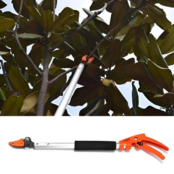 Tijeras que permiten podar ramas y recoger frutos sin esfuerzo.